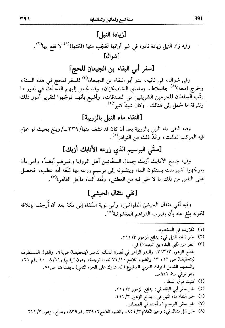 (¬8) خبر نقل مثقال في: وجيز الكلام 3/ 951، والضوء اللامع 6/ 239 رقم 839، وبدائع الزهور 3/ 211.