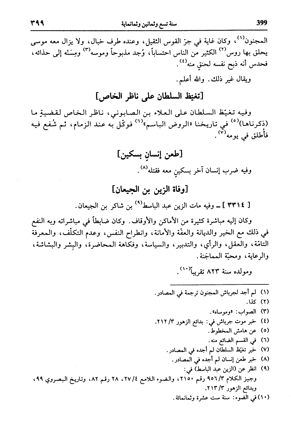 (¬9) انظر عن (الزين عبد الباسط) في: وجيز الكلام 3/ 956 رقم 2150، والضوء اللامع 4/ 27، 28 رقم 82، وتاريخ البصروي 99، وبدائع الزهور 3/ 213.