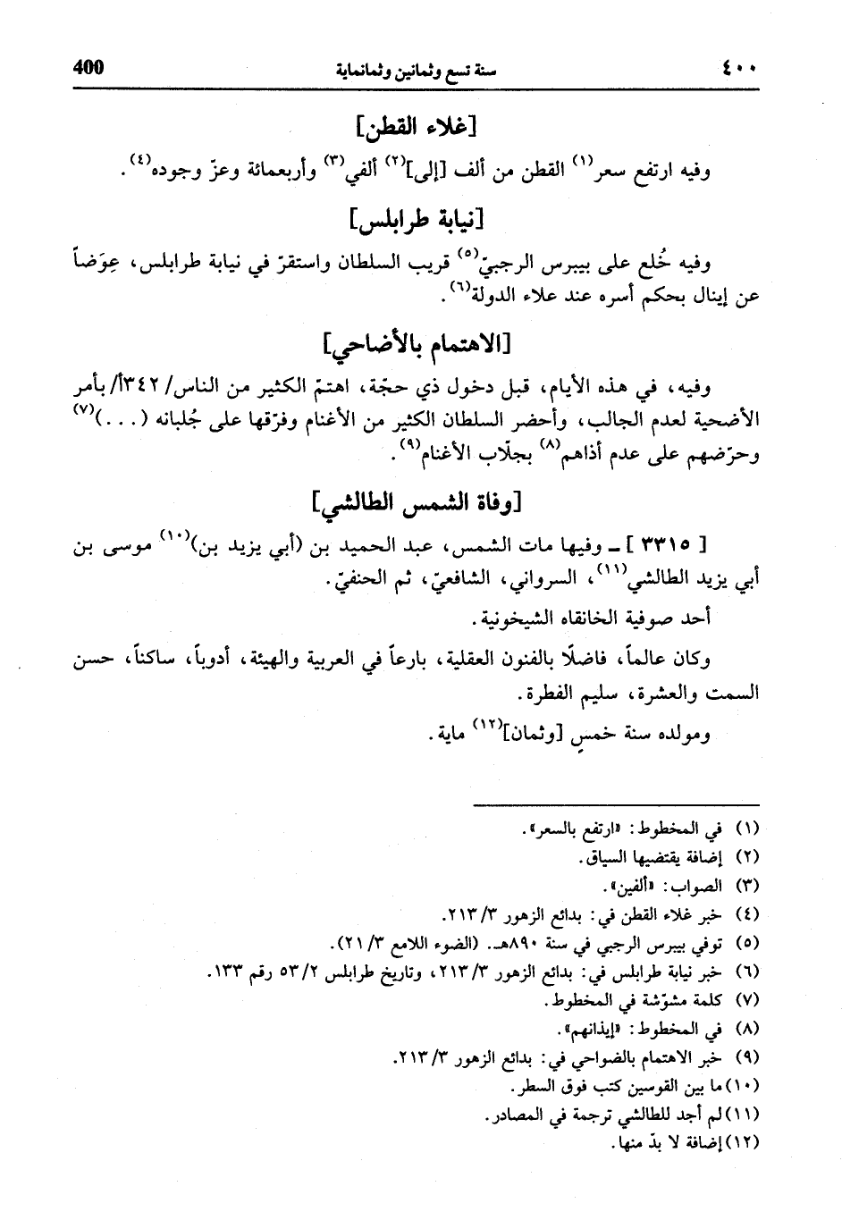 (¬4) خبر غلاء القطن في: بدائع الزهور 3/ 213.