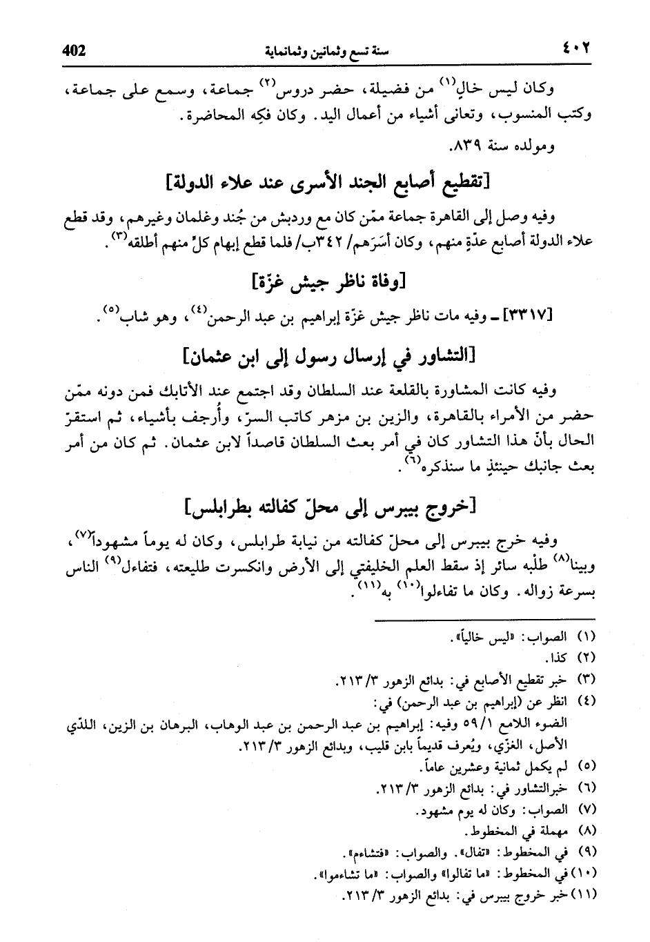 (¬6) خبر التشاور في: بدائع الزهور 3/ 213.
