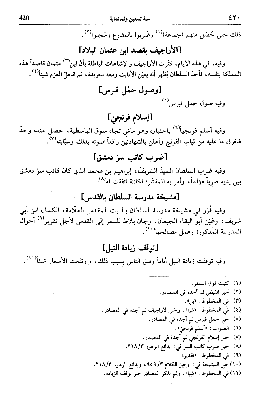(¬7) خبر إسلام الفرنجي لم أجده في المصادر.