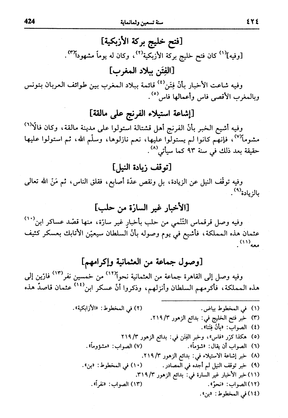 (¬8) خبر إشاعة الاستيلاء في: بدائع الزهور 3/ 219.