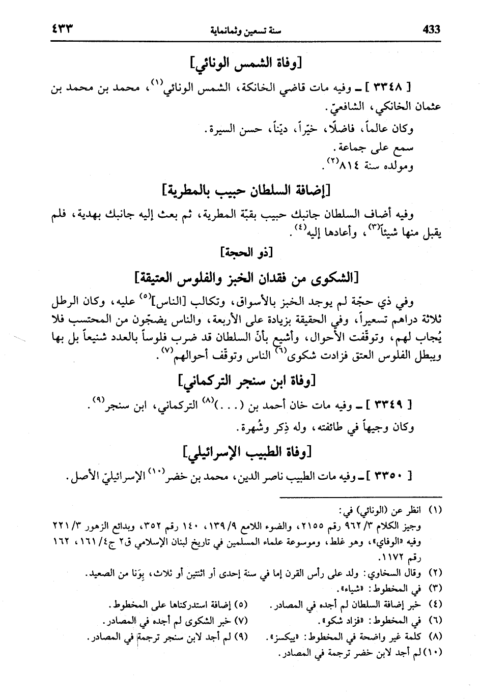 (¬1) انظر عن (الونائي) في: وجيز الكلام 3/ 962 رقم 2155، والضوء اللامع 9/ 139، 140 رقم 352، وبدائع الزهور 3/ 221 وفيه «الوفاي»، وهو غلط، وموسوعة علماء المسلمين في تاريخ لبنان الإسلامي ق 2 ج 4/ 161، 162 رقم 1172.