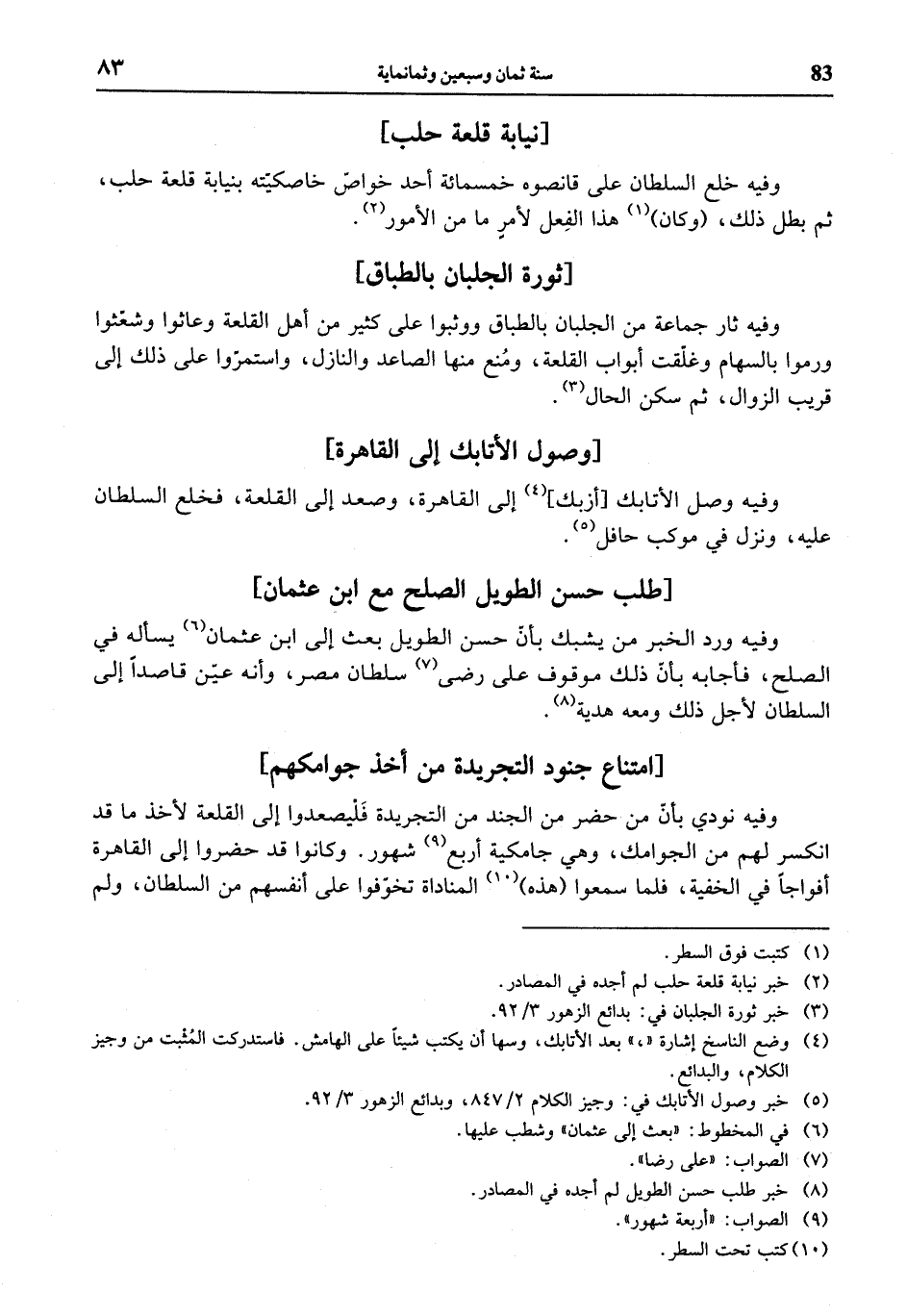 (¬2) خبر نيابة قلعة حلب لم أجده في المصادر.