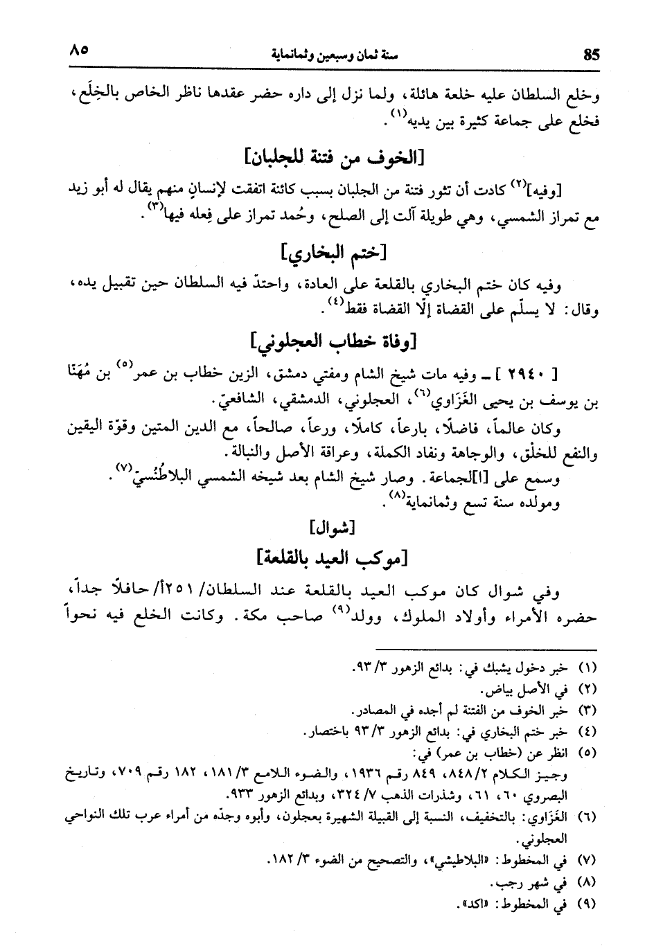 (¬4) خبر ختم البخاري في: بدائع الزهور 3/ 93 باختصار.