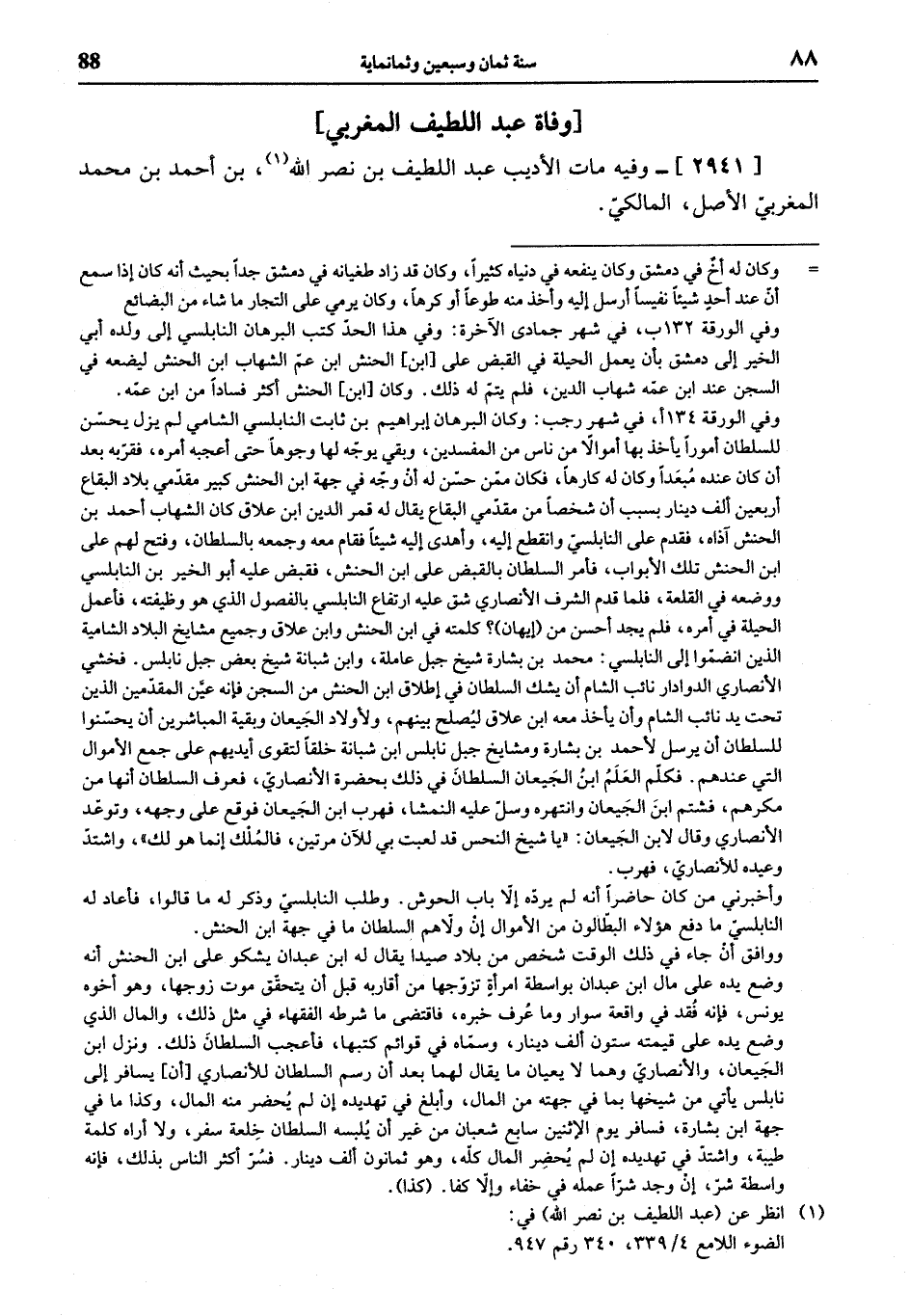 (¬1) انظر عن (عبد اللطيف بن نصر الله) في: الضوء اللامع 4/ 339، 340 رقم 947.