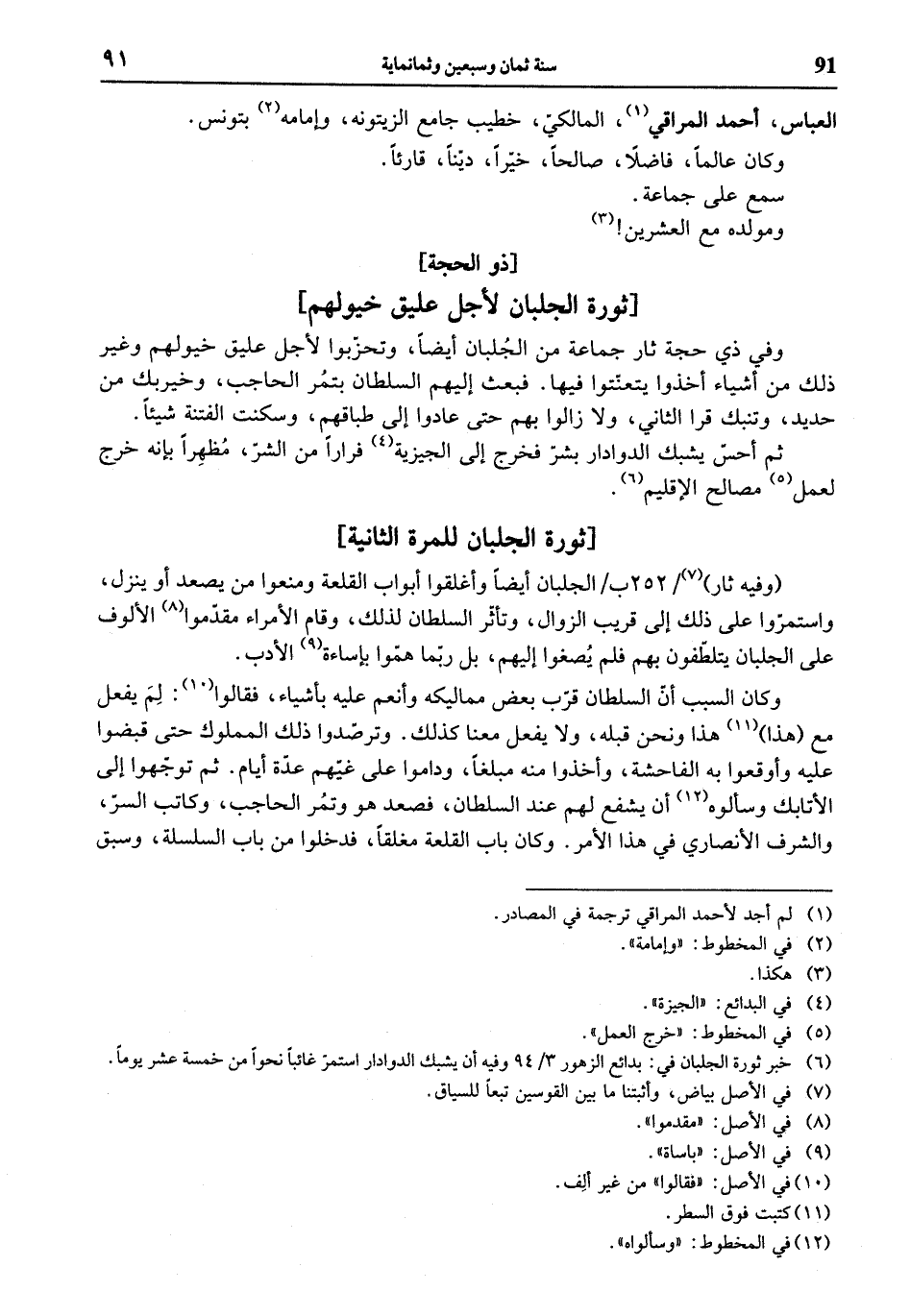 (¬6) خبر ثورة الجلبان في: بدائع الزهور 3/ 94 وفيه أن يشبك الدوادار استمرّ غائبا نحوا من خمسة عشر يوما.