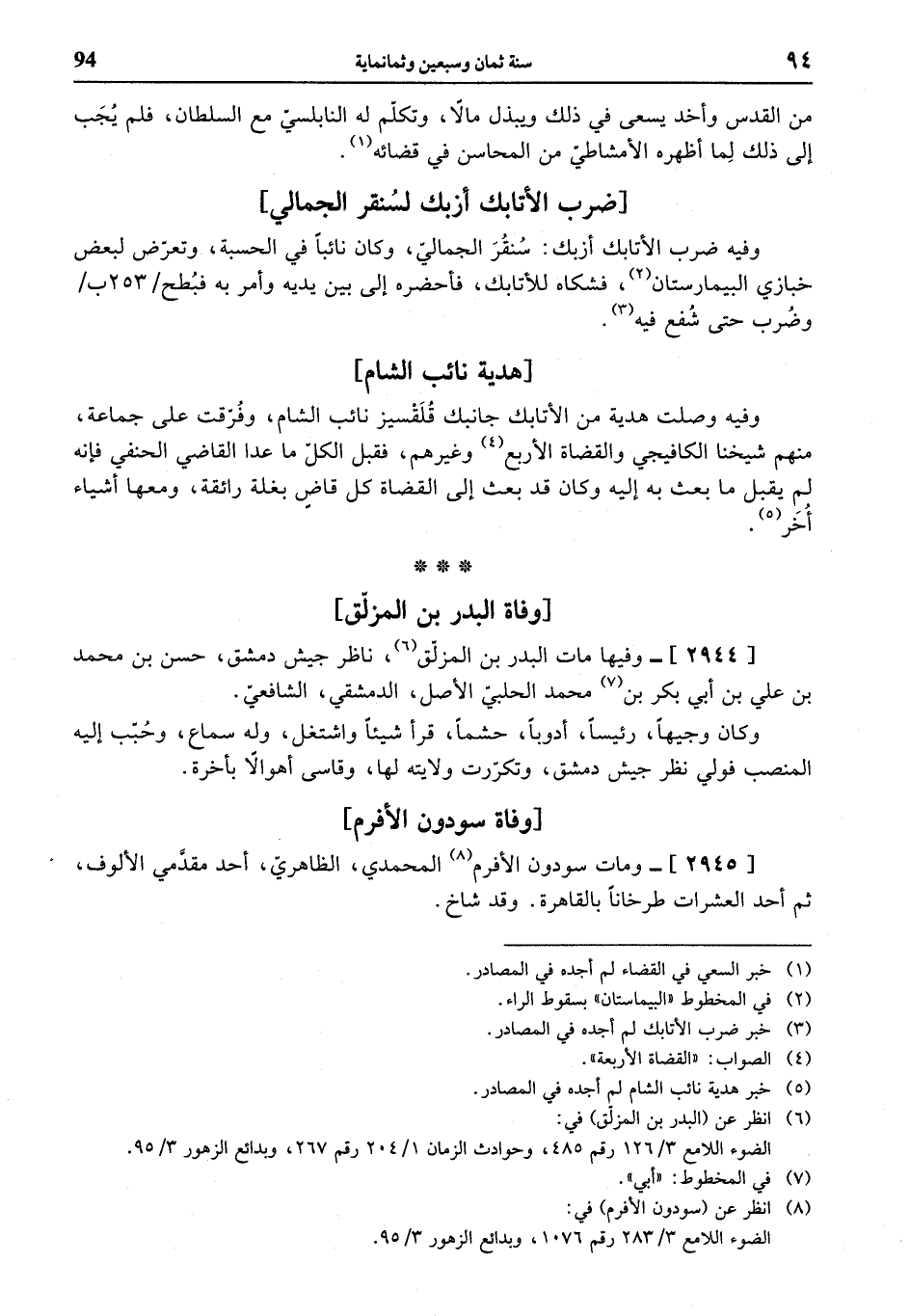 (¬8) انظر عن (سودون الأفرم) في: الضوء اللامع 3/ 283 رقم 1076، وبدائع الزهور 3/ 95.