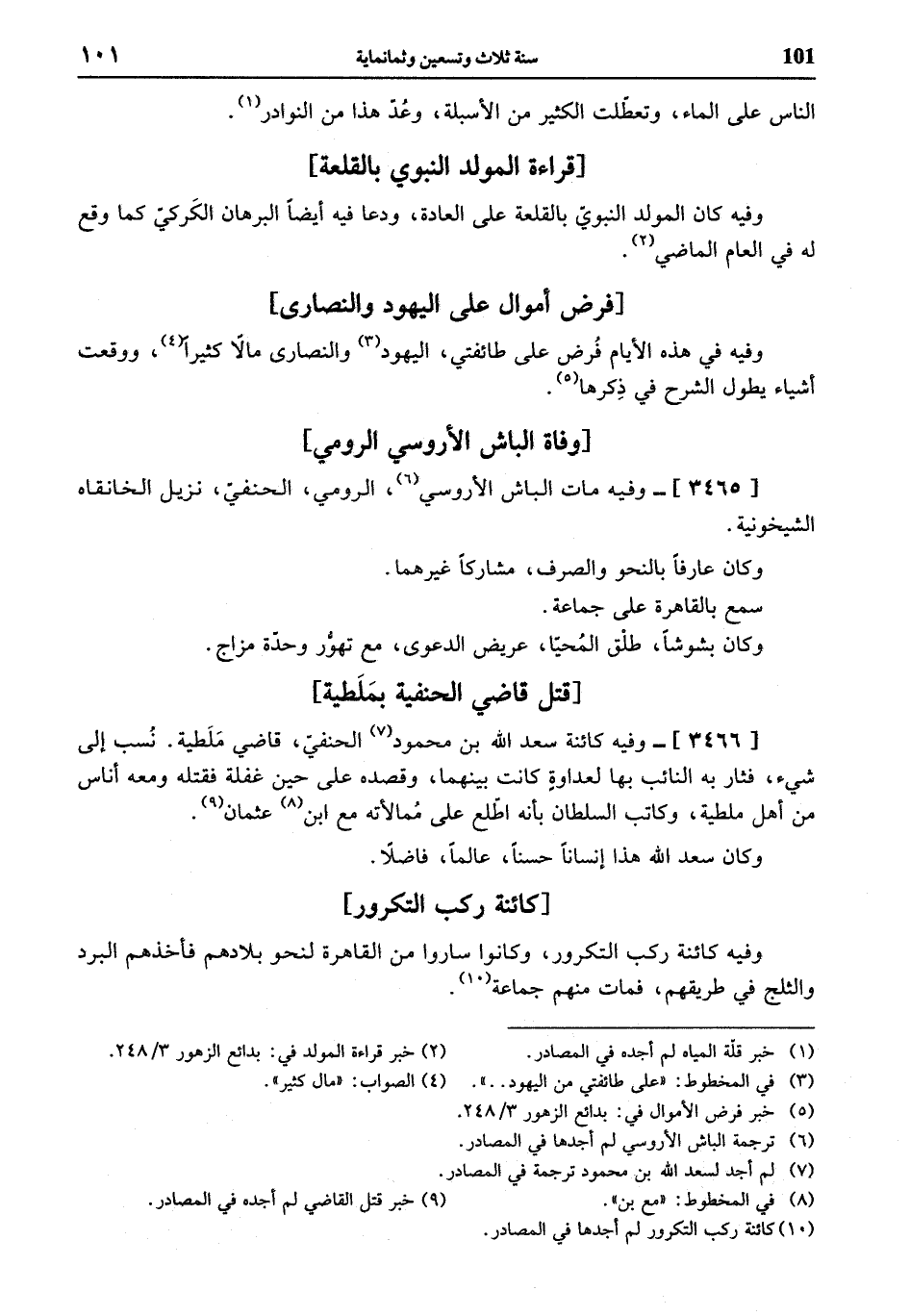 (¬5) خبر فرض الأموال في: بدائع الزهور 3/ 248.