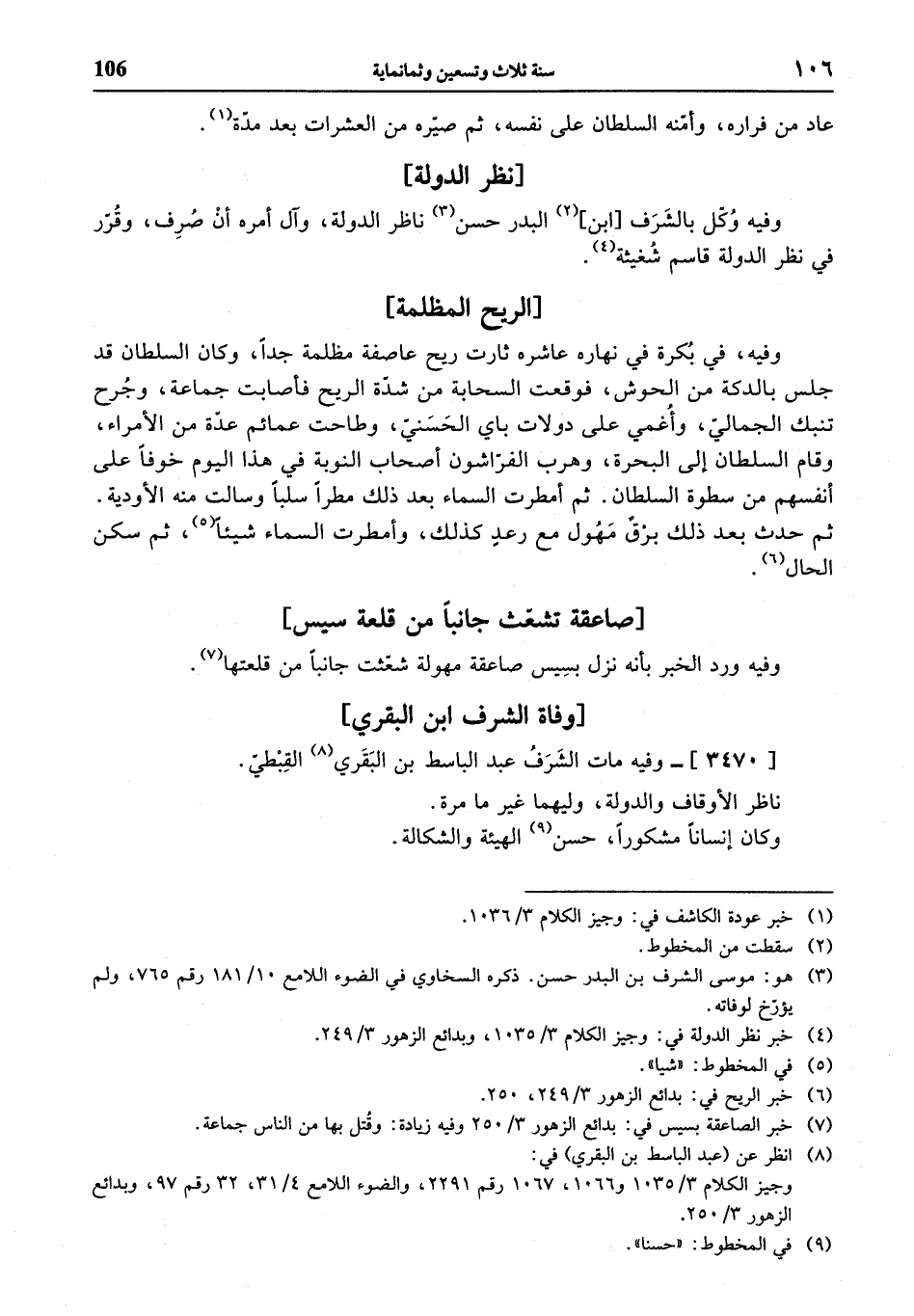 (¬4) خبر نظر الدولة في: وجيز الكلام 3/ 1035، وبدائع الزهور 3/ 249.
