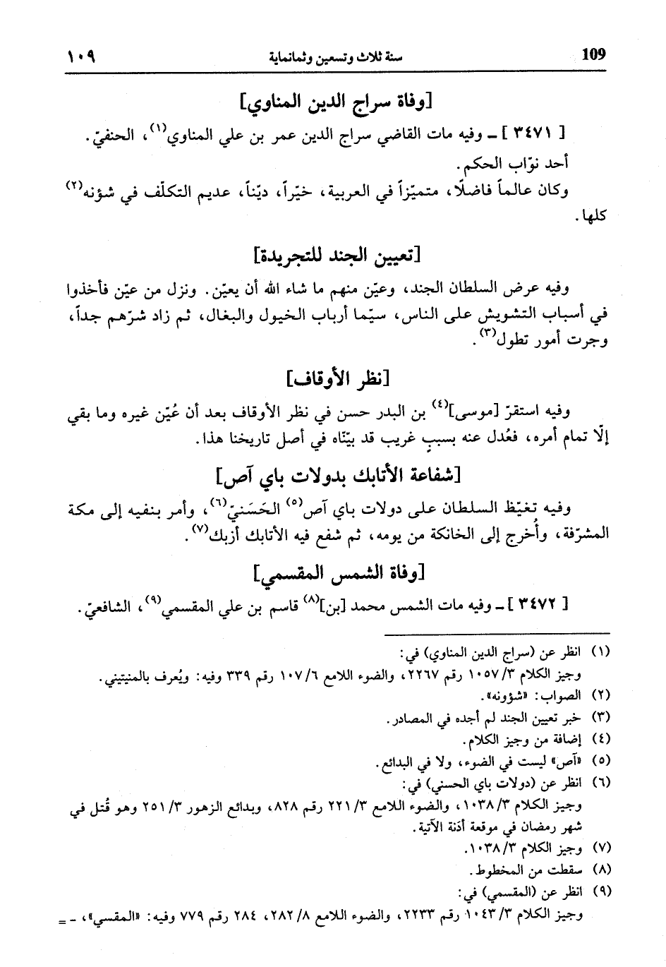 (¬1) انظر عن (سراج الدين المناوي) في: وجيز الكلام 3/ 1057 رقم 2267، والضوء اللامع 6/ 107 رقم 339 وفيه: ويعرف بالمنيتيني.