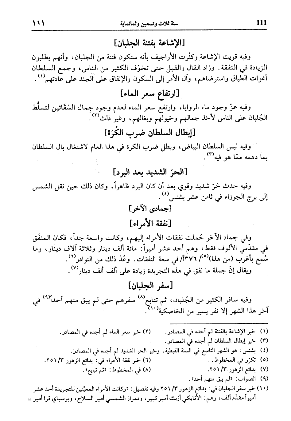 (¬6) خبر نفقة الأمراء في: بدائع الزهور 3/ 251.