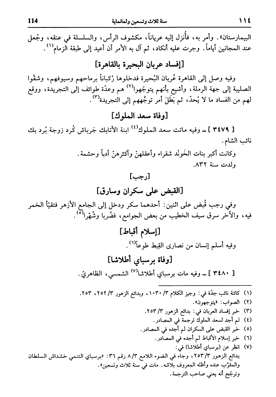 (¬3) خبر إفساد العربان في: بدائع الزهور 3/ 253.