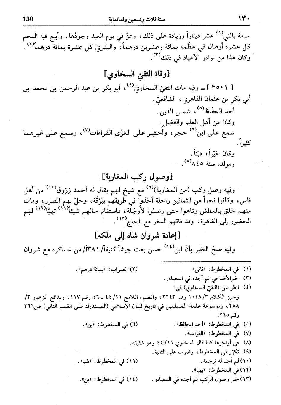 (¬4) انظر عن «التقيّ السخاوي) في: وجيز الكلام 3/ 1048 رقم 2243، والضوء اللامع 11/ 44 - 46 رقم 117، وبدائع الزهور 3/ 258، وموسوعة علماء المسلمين في تاريخ لبنان الإسلامي (المستدرك على القسم الثاني) ص 296 رقم 265.