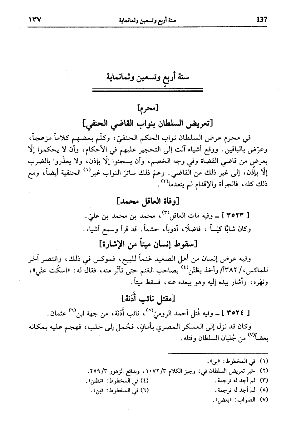 [3524]- وفيه قتل أحمد الروميّ (¬5)، نائب أدنة، من جهة ابن (¬6) عثمان.