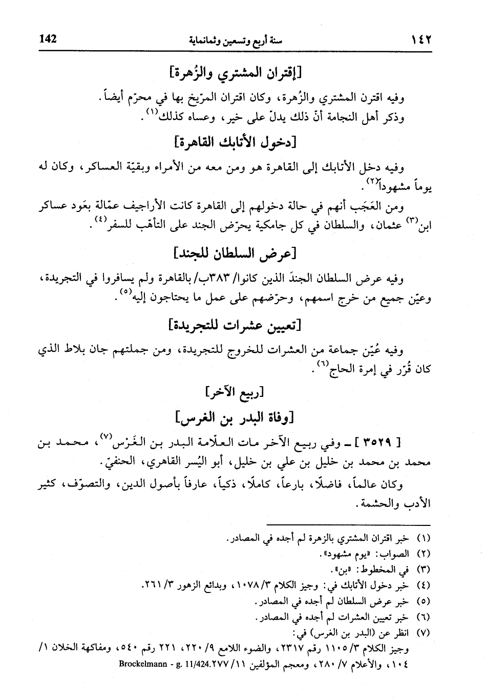 (¬7) انظر عن (البدر بن الغرس) في: وجيز الكلام 3/ 1105 رقم 2317، والضوء اللامع 9/ 220، 221 رقم 540، ومفاكهة الخلان 1/ 104، والأعلام 7/ 280، ومعجم المؤلفين 11/ 277، Brockclmann - g . 11/ 424 .