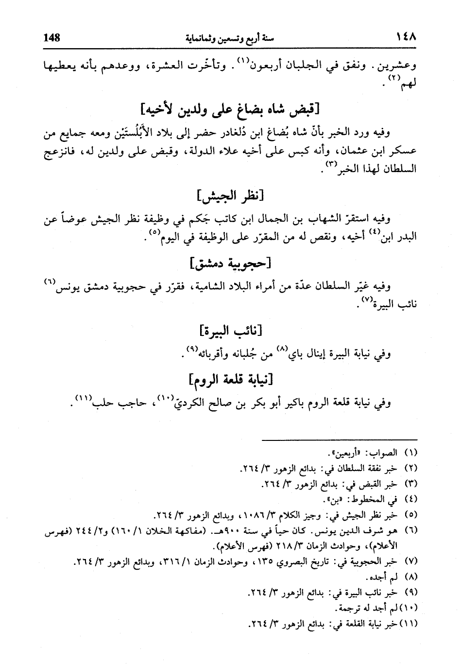 (¬9) خبر نائب البيرة في: بدائع الزهور 3/ 264.