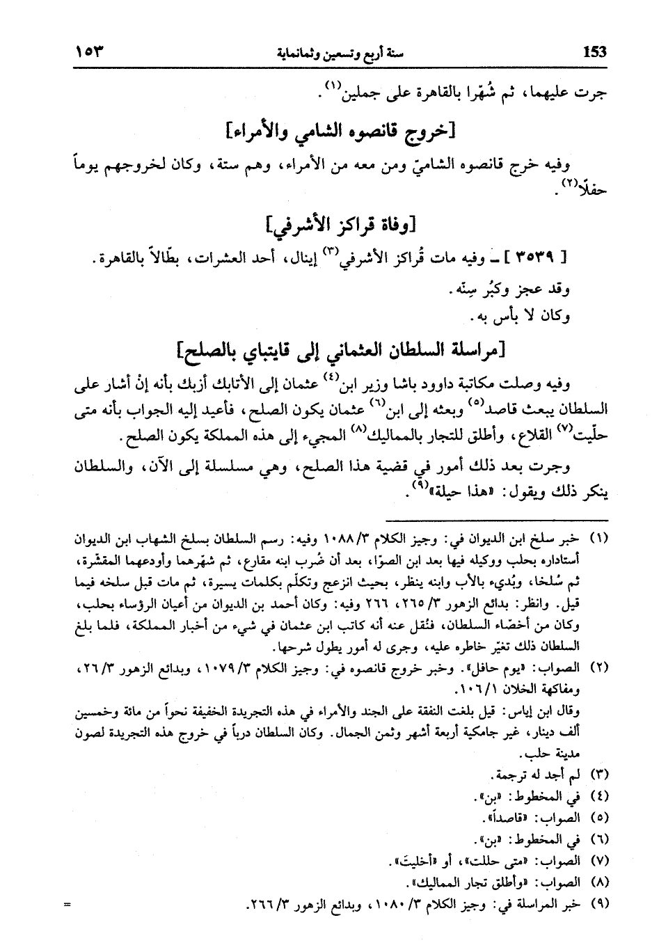 (¬9) خبر المراسلة في: وجيز الكلام 3/ 1080، وبدائع الزهور 3/ 266.