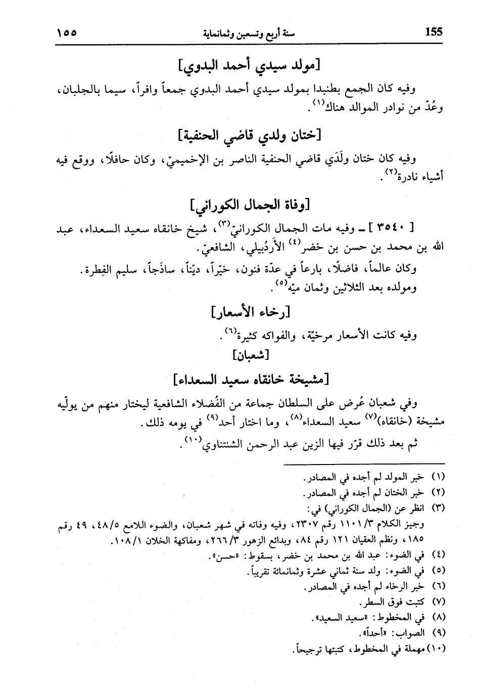 وفي شعبان عرض على السلطان جماعة من الفضلاء الشافعية ليختار منهم من يولّيه مشيخة (خانقاه) (¬7) سعيد السعداء (¬8)، وما اختار أحد (¬9) في يومه ذلك.