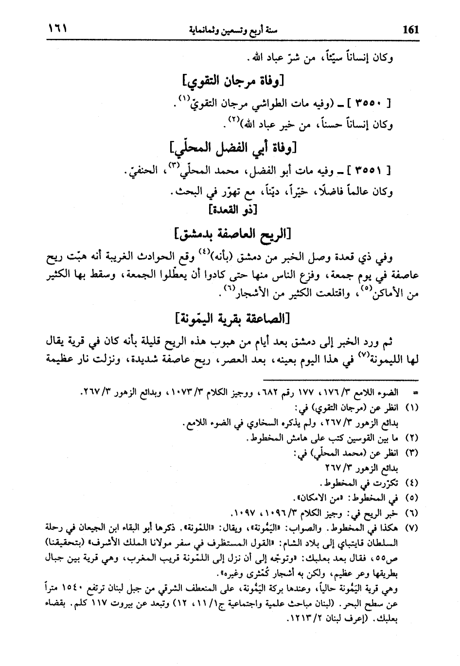 [3551]- وفيه مات أبو الفضل، محمد المحلّي (¬3)، الحنفيّ.