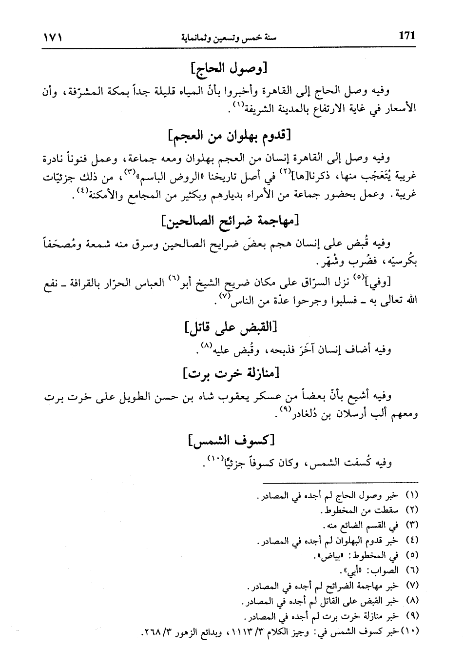 (¬10) خبر كسوف الشمس في: وجيز الكلام 3/ 1113، وبدائع الزهور 3/ 268.