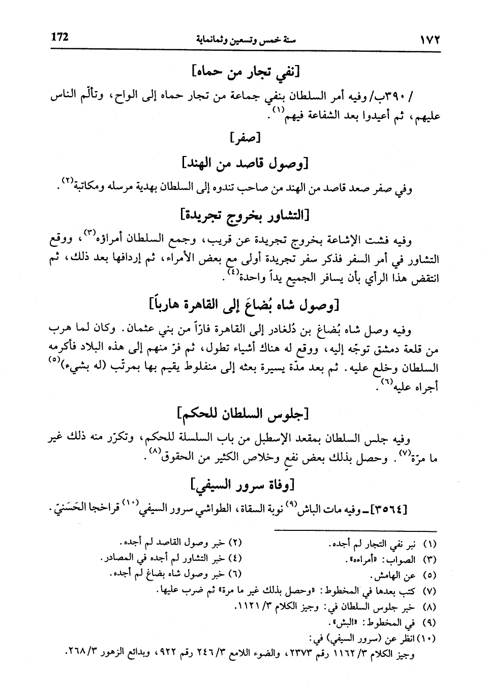 (¬10) انظر عن (سرور السيفي) في: وجيز الكلام 3/ 1162 رقم 2373، والضوء اللامع 3/ 246 رقم 922، وبدائع الزهور 3/ 268.