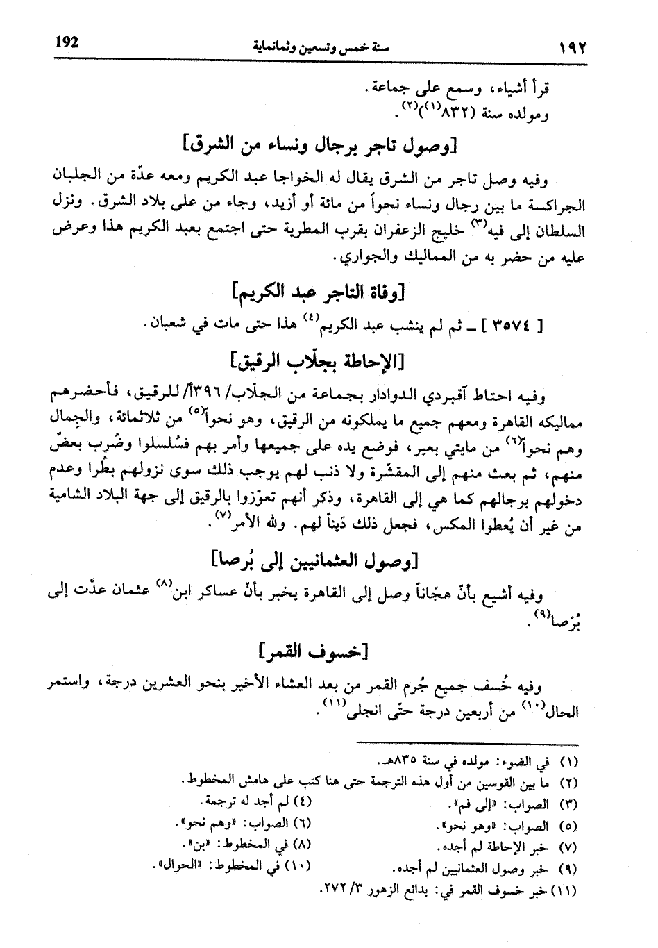(¬11) خبر خسوف القمر في: بدائع الزهور 3/ 272.
