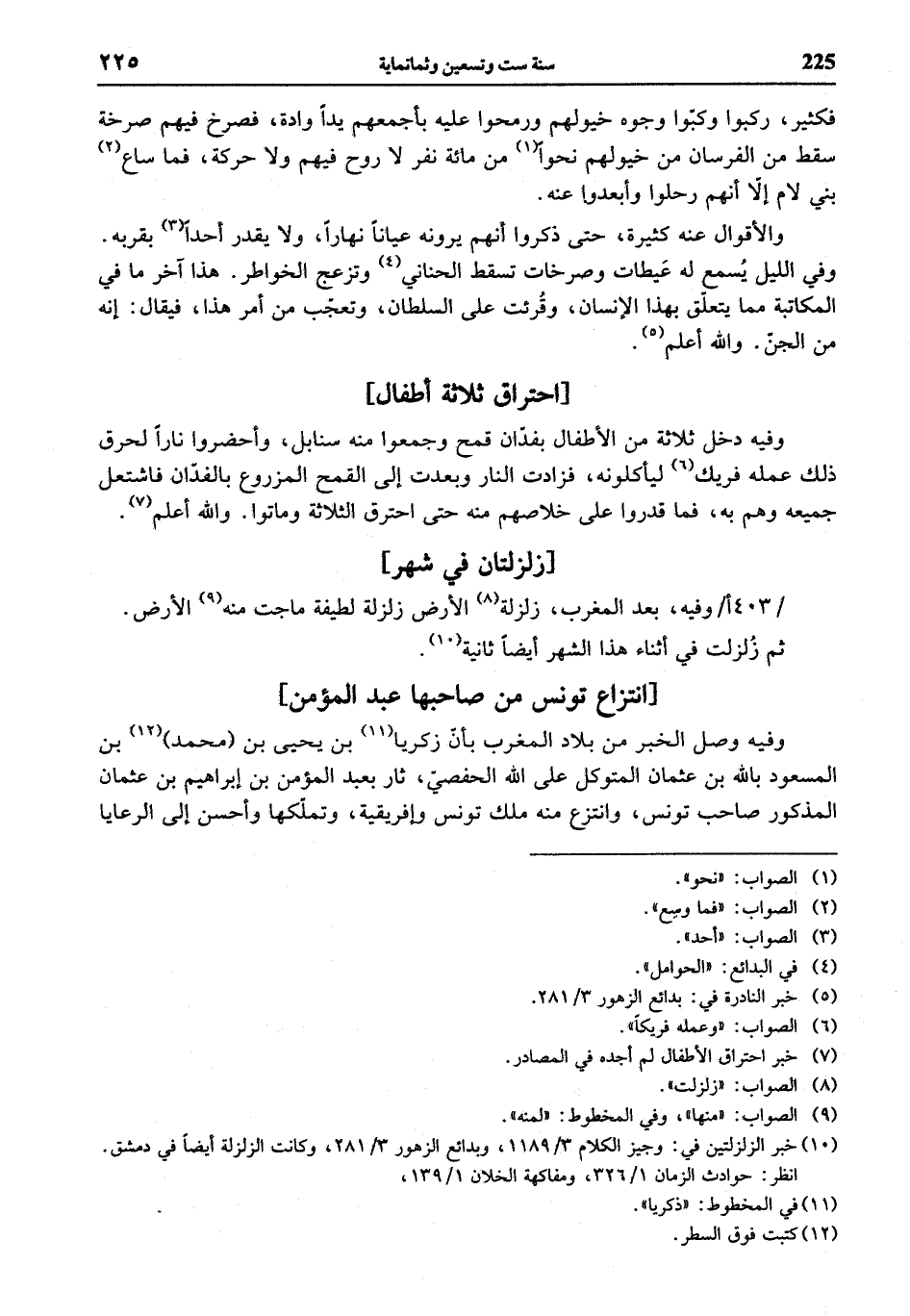 (¬10) خبر الزلزلتين في: وجيز الكلام 3/ 1189، وبدائع الزهور 3/ 281، وكانت الزلزلة أيضا في دمشق. انظر: حوادث الزمان 1/ 326، ومفاكهة الخلان 1/ 139،