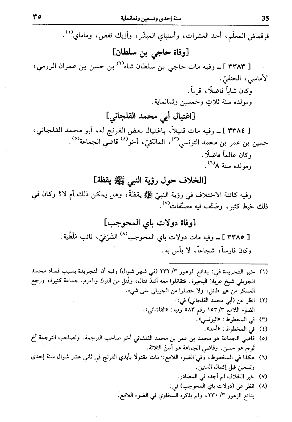 (¬8) انظر عن (دولات باي المحوجب) في: بدائع الزهور 3/ 230، ولم يذكره السخاوي في الضوء اللامع.