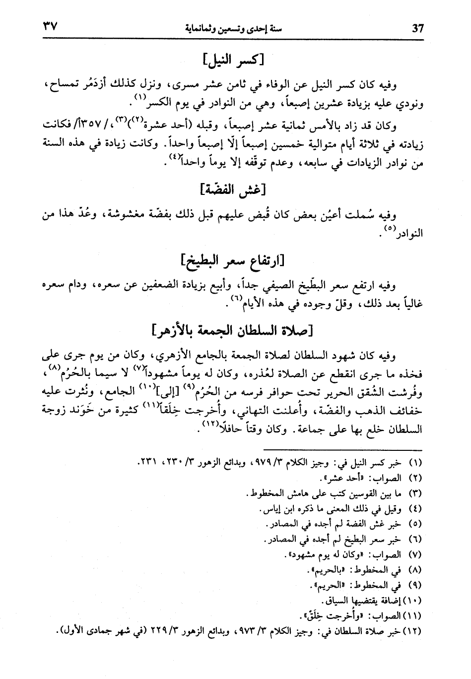 (¬12) خبر صلاة السلطان في: وجيز الكلام 3/ 973، وبدائع الزهور 3/ 229 (في شهر جمادى الأول).
