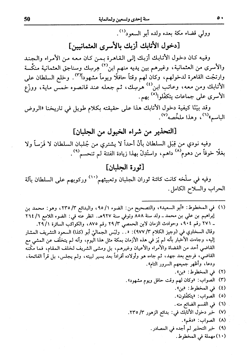 (¬7) خبر دخول الأتابك في: بدائع الزهور 3/ 235.