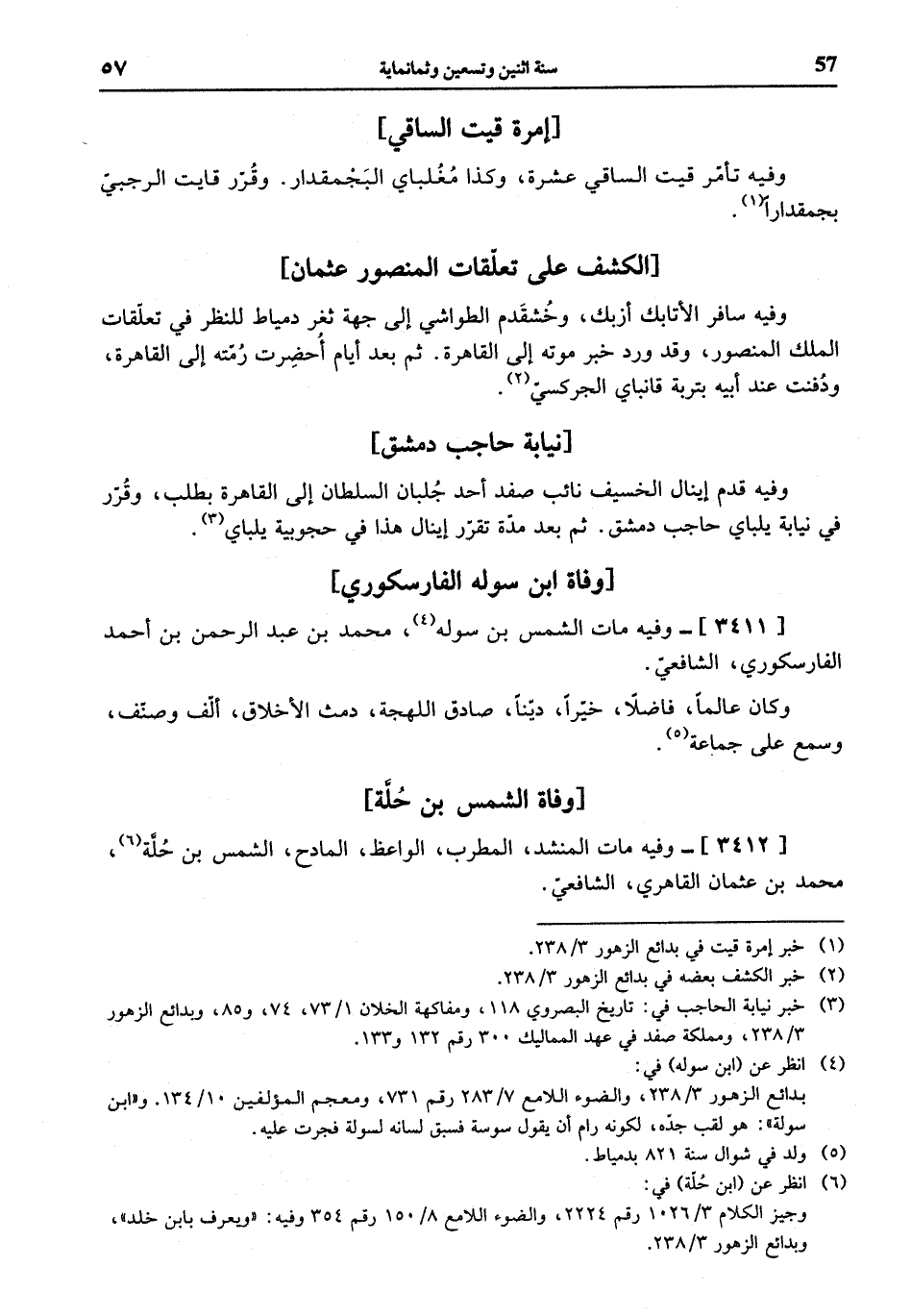 (¬3) خبر نيابة الحاجب في: تاريخ البصروي 118، ومفاكهة الخلان 1/ 73، 74، و 85، وبدائع الزهور 3/ 238، ومملكة صفد في عهد المماليك 300 رقم 132 و 133.