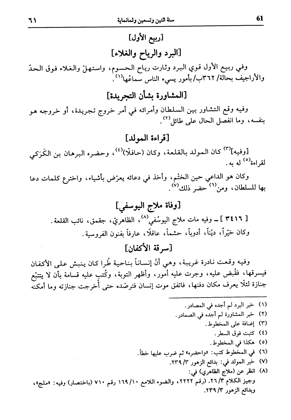 (¬2) خبر المشاورة لم أجده في الصمادر.
