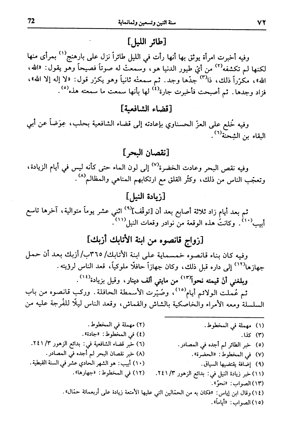 (¬11) خبر زيادة النيل في: بدائع الزهور 3/ 241.