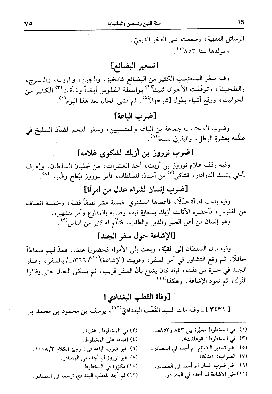 (¬6) خبر ضرب الباعة في: وجيز الكلام 3/ 1008.