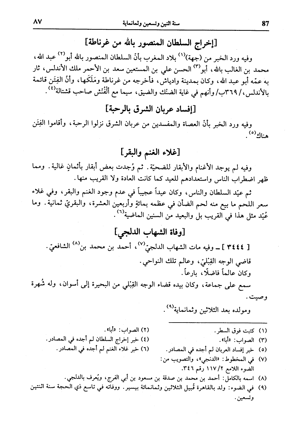 (¬8) اسمه بالكامل: أحمد بن محمد بن صدقة بن مسعود بن أبي الفرج، ويعرف بالدلجي.