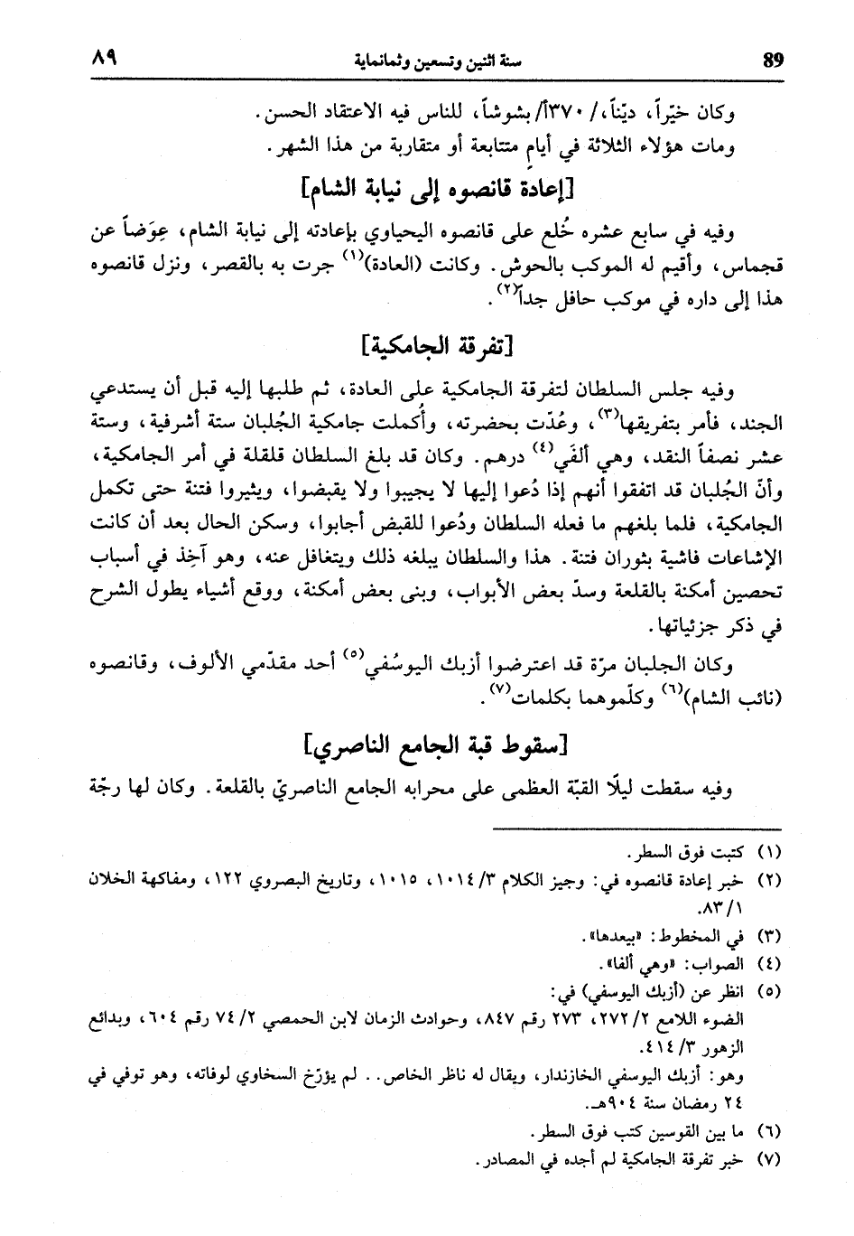(¬2) خبر إعادة قانصوه في: وجيز الكلام 3/ 1014، 1015، وتاريخ البصروي 122، ومفاكهة الخلان 1/ 83.