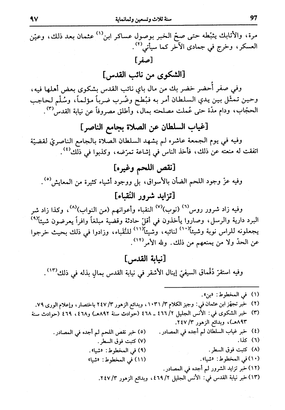 (¬13) خبر نيابة القدس في: الأنس الجليل 2/ 469، وبدائع الزهور 3/ 247.
