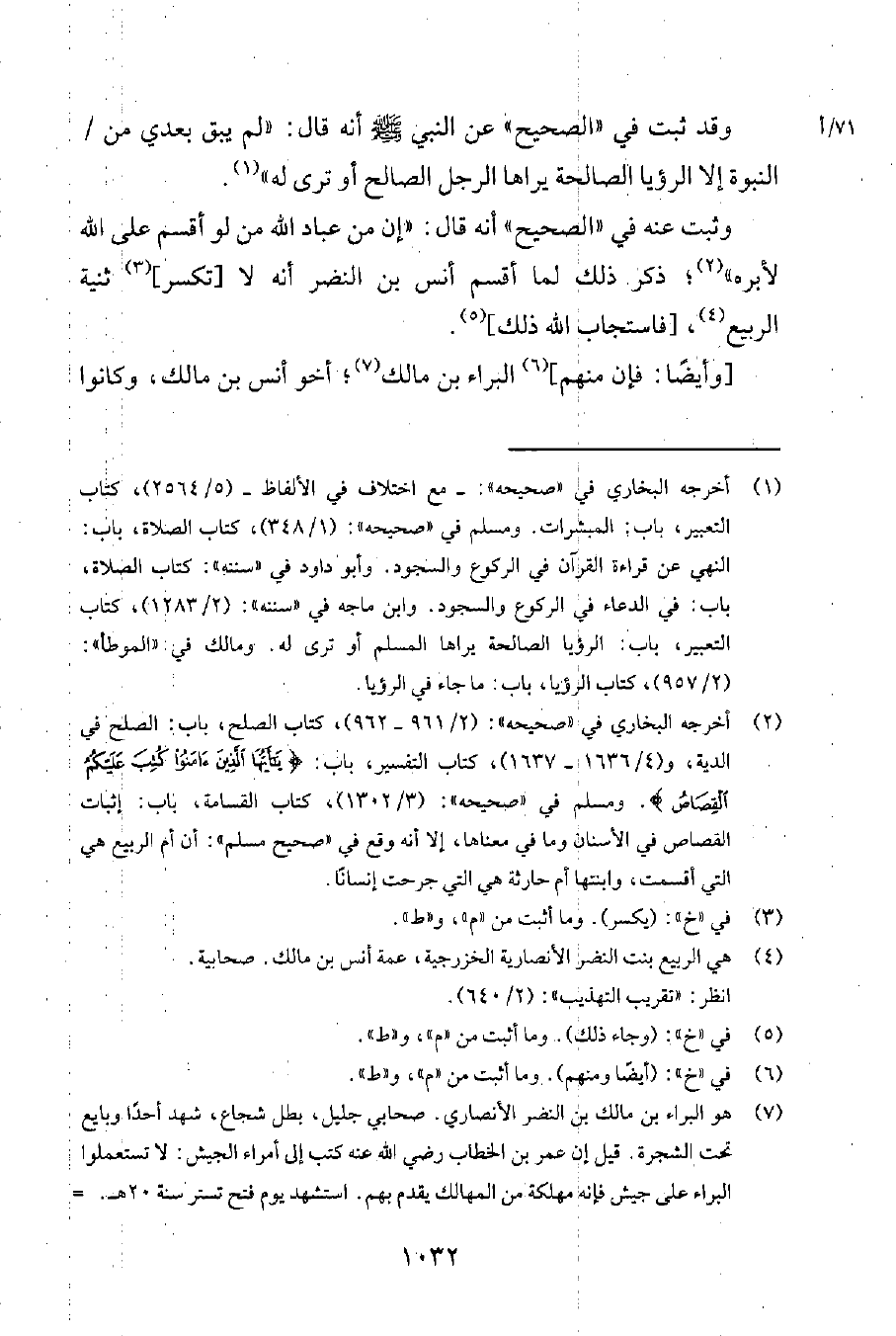 2 أخرجه البخاري في صحيحه2961-962، كتاب الصلح، باب الصلح في الدية، و 41636-1637، كتاب التفسير، باب {يَا أَيُّهَا الَّذِينَ آمَنُوا كُتِبَ عَلَيْكُمُ الْقِصَاصُ} ومسلم في صحيحه 31302، كتاب القسامة، باب إثبات القصاص في الأسنان وما في معناها، إلا أنه وقع في صحيح مسلم أن أم الربيع هي التي أقسمت، وابنتها أم حارثة هي التي جرحت إنساناً.