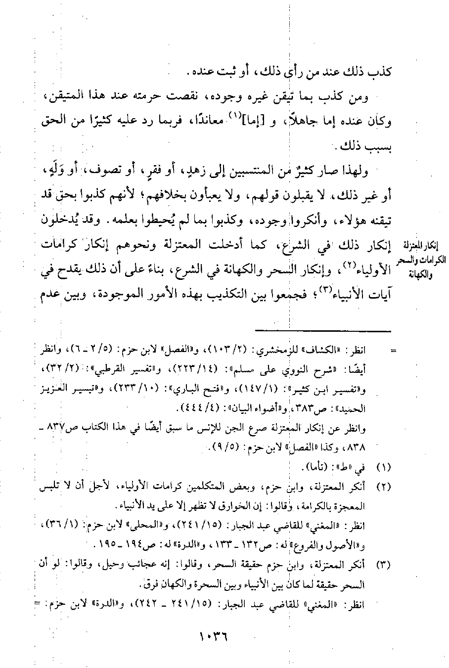 2 أنكر المعتزلة، وابن حزم، وبعض المتكلمين كرامات الأولياء، لأجل أن لا تلبس المعجزة بالكرامة، وقالوا: إن الخوارق لا تظهر إلا على يد الأنبياء.