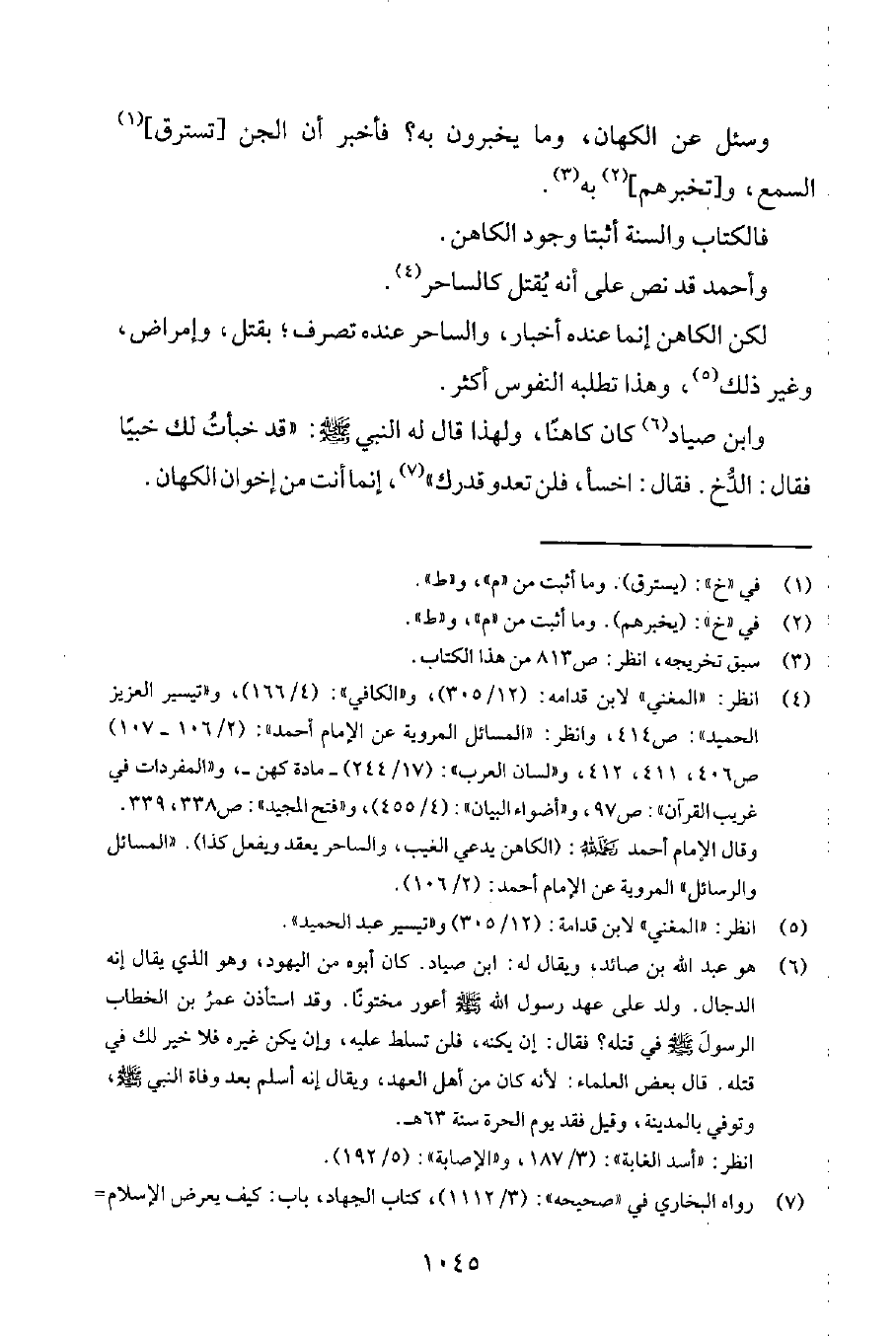 5 انظر: المغني لابن قدامه 12305. وتيسير العزيز الحميد ص 406، 411، 412. ولسان العرب 17244 - مادة كهن -. والمفردات في غريب القرآن ص 97. وأضواء البيان 4455. وفتح المجيد ص 338، 339.