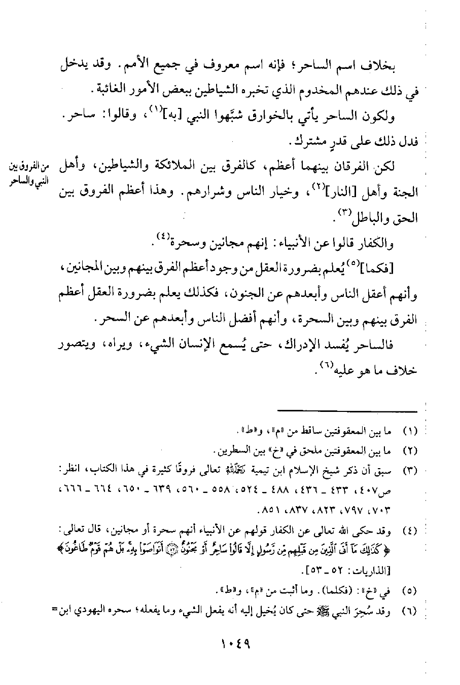 [فكما] 5 يُعلم بضرورة العقل من وجود أعظم الفرق بينهم وبين المجانين، وأنهم أعقل الناس وأبعدهم عن الجنون، فكذلك يعلم بضرورة العقل أعظم الفرق بينهم وبين السحرة، وأنهم أفضل الناس وأبعدهم عن السحر.