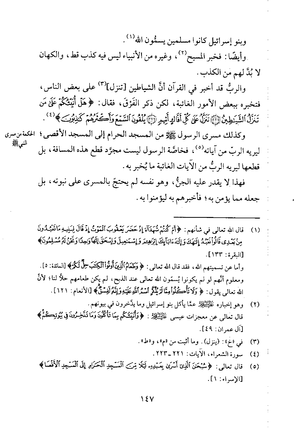 5 قال تعالى: {سُبْحَانَ الَّذِي أَسْرَى بِعَبْدِهِ لَيْلاً مِنَ الْمَسْجِدِ الْحَرَامِ إِلَى الْمَسْجِدِ الْأَقْصَى} . [الإسراء، 1] .