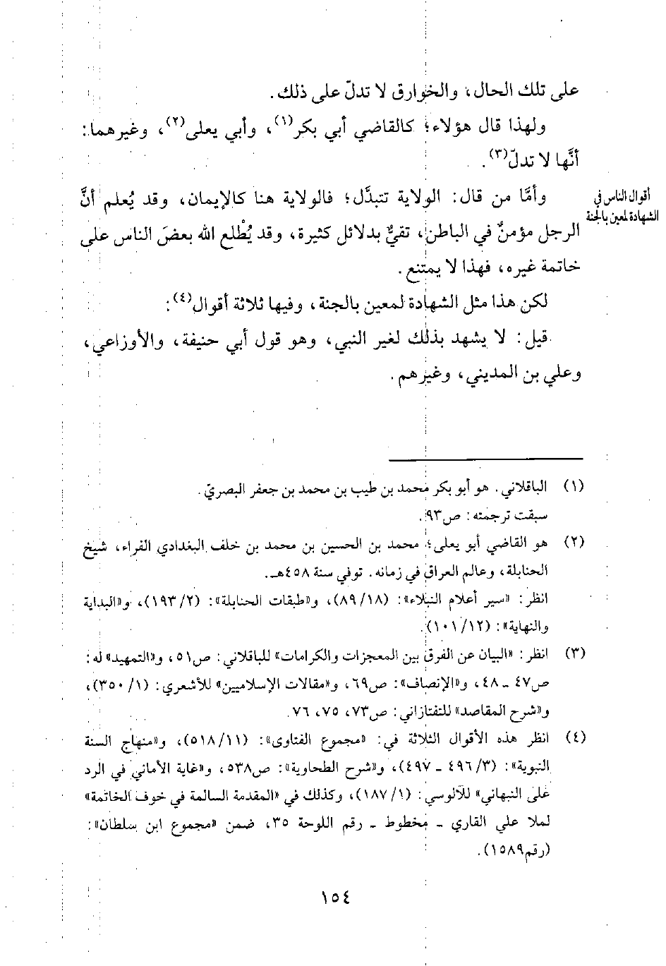 4 انظر هذه الأقوال الثلاثة في: مجموع الفتاوى 11/518. ومنهاج السنة النبوية 3/496-497. وشرح الطحاوية ص 538. وغاية الأماني في الرد على النبهاني للآلوسي 1/187. وكذلك في المقدمة السالمة في خوف الخاتمة لملا علي القاري - مخطوط - رقم اللوحة 35، ضمن مجموع ابن سلطان رقم 1589.