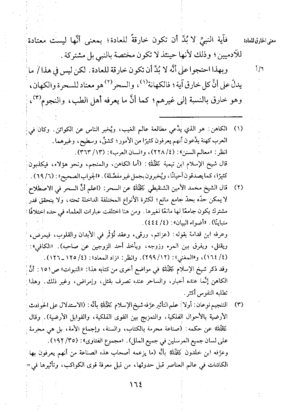 وبهذا احتجوا على أنّه لا بدّ أن تكون خارقة للعادة. لكن ليس في هذا ما يدلّ على أنّ كل خارق آية؛ فالكهانة1، والسحر2 هو معتاد للسحرة والكهان، وهو خارق بالنسبة إلى غيرهم؛ كما أنّ ما يعرفه أهل الطب، والنجوم3،