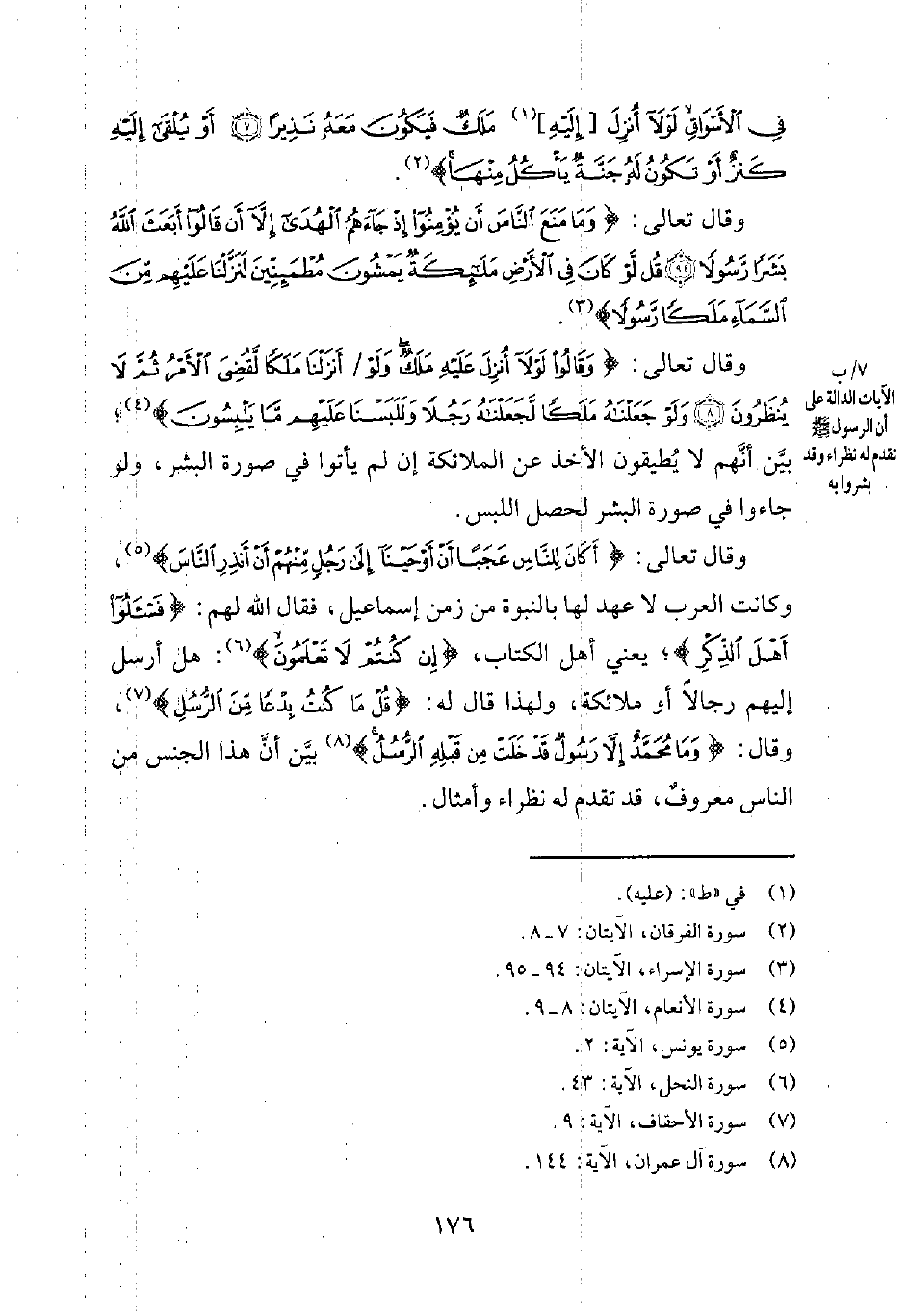 وقال تعالى: {وَمَا مَنَعَ النَّاسَ أَنْ يُؤْمِنُوا إِذْ جَاءَهُمُ الهُدَى إِلاَّ أَنْ قَالُوا أَبَعَثَ اللهُ بَشَرَاً رَسُولاً قُلْ لَوْ كَانَ في الأَرْضِ مَلائِكَةٌ يَمْشُونَ مُطْمَئِنِّينَ لَنَزَّلْنَا عَلَيْهِمْ مِنَ السَّمَاءِ مَلَكَاً رَسُولاً} 3.