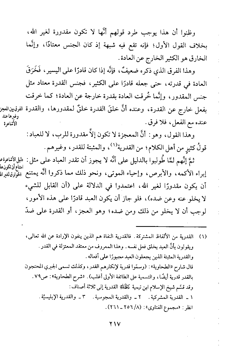وهذا القول، وهو: أنّ المعجزة لا تكون إلاَّ مقدورة للرب، لا للعباد: قولُ كثيرٍ من أهل الكلام؛ من القدرية1، والمثبتة للقدر، وغيرهم.