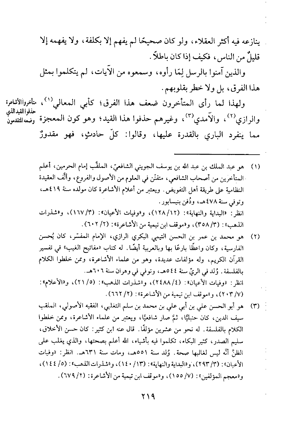 متأخروا الأشاعرة حذفوا القيد الذي وضعه المتقدمون