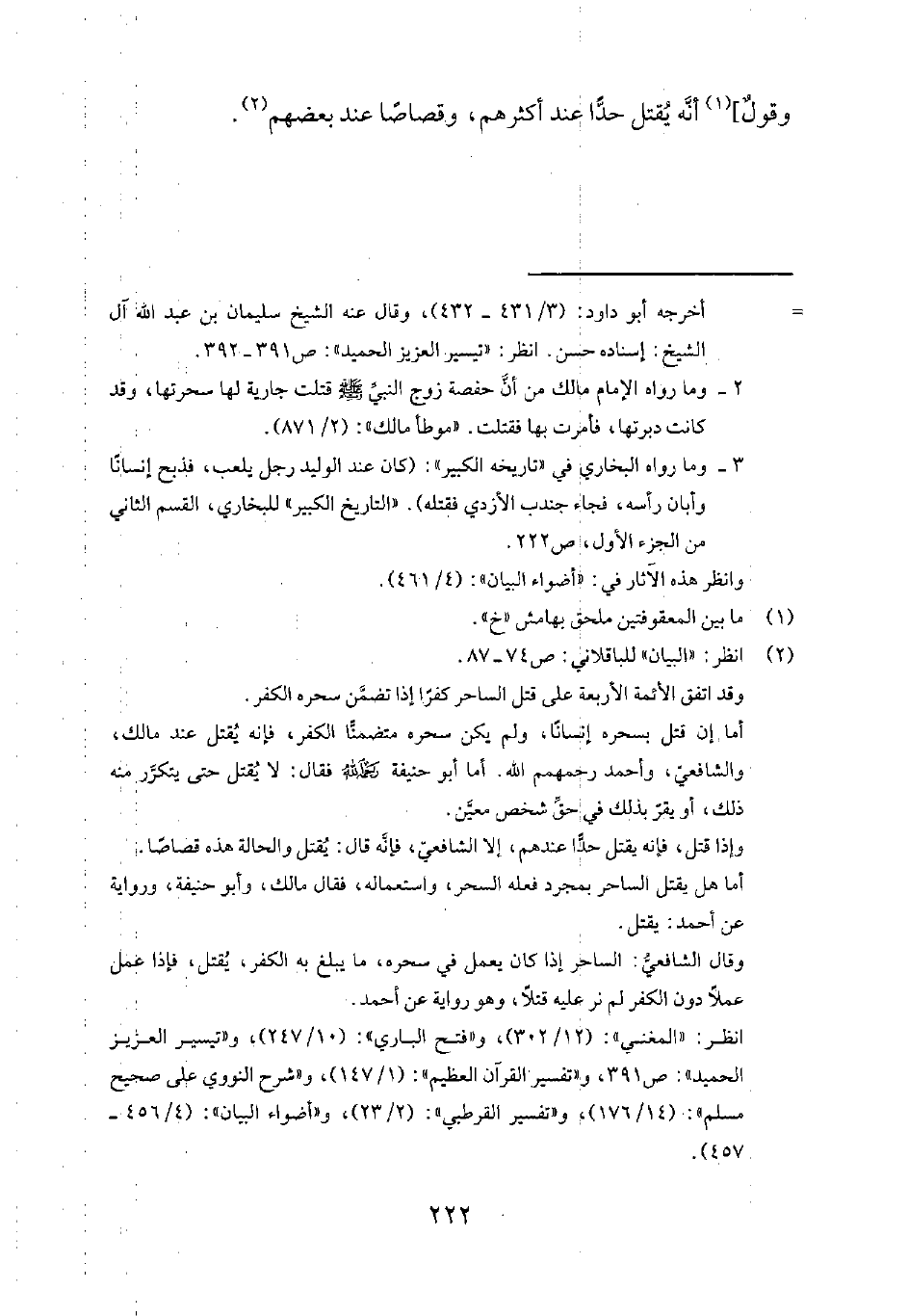 وقد اتفق الأئمة الأربعة على قتل الساحر كفراً إذا تضمّن سحره الكفر.