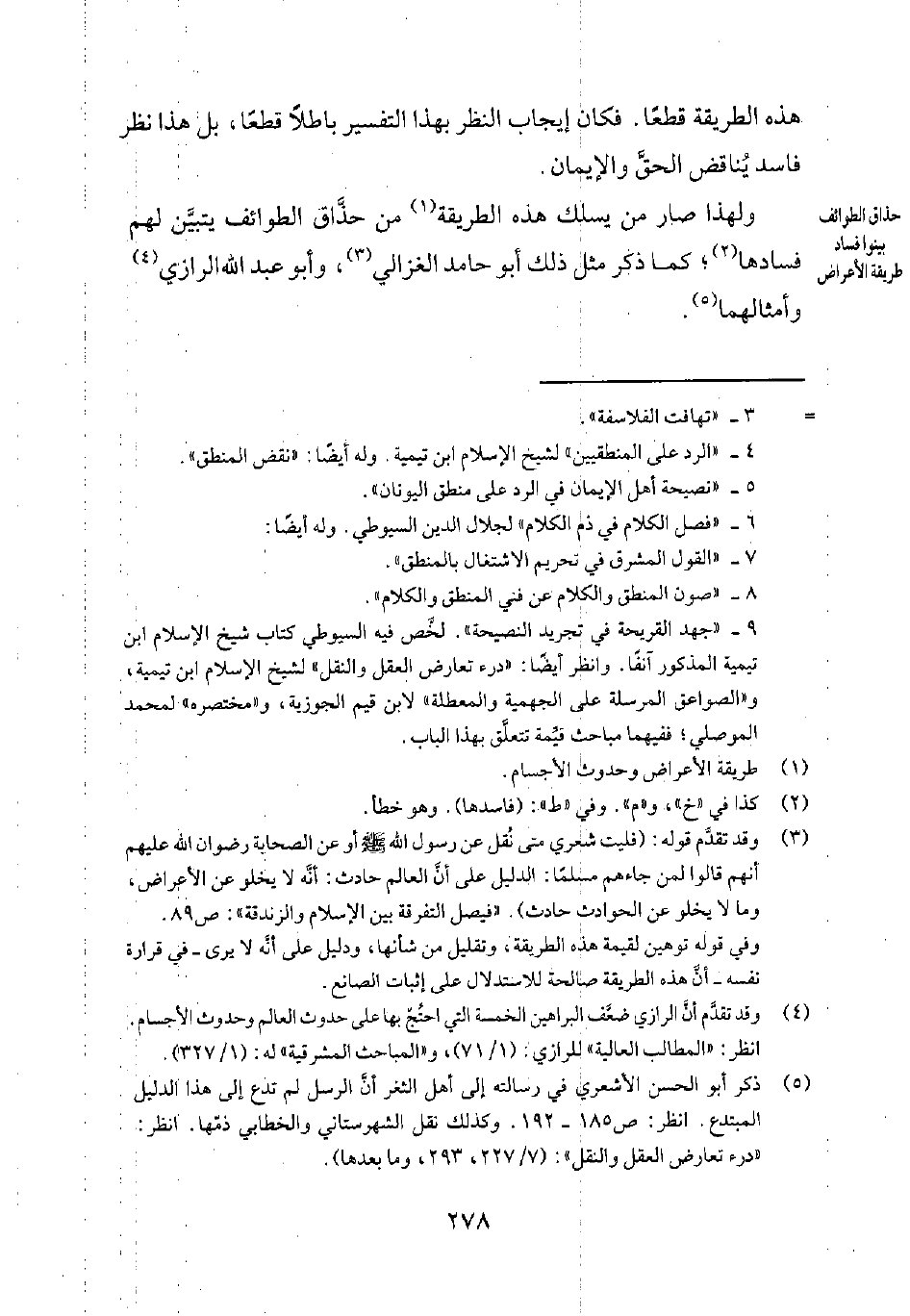5 ذكر أبو الحسن الأشعري في رسالته إلى أهل الثغر أنّ الرسل لم تدع إلى هذا الدليل المبتدع انظر: ص 185-192) . وكذلك نقل الشهرستاني والخطابي ذمّها. انظر: درء تعارض العقل والنقل 7/227، 293، وما بعدها.